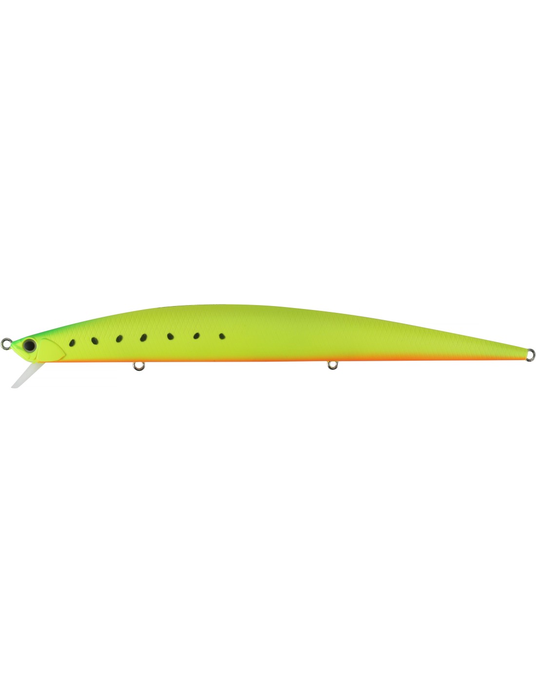 Der Duo Tide Minnow Slim Flyer 175 wurde ursprünglich für das Angeln an der Küste entworfen, wo besonders weite Wurfdistanzen gefordert sind. Hierzulande hat er sich jedoch als sagenhafter Köder auf Seeforellen und Hecht bewiesen. Zugegeben, die Grösse schreckt im ersten Moment Viele ab. Wer sich jedoch an diesen Wobbler wagt, wird von seinen Eigenschaften begeistert sein. Durch die Verbesserungen des Weitfurfsystems (Weight Transfer System) lässt sich der 200er Tide Minnow noch weiter werfen. Des Weiteren wurde die Balance des Köders in der Strömung und während des Fischens optimiert, um den Minnow selbst in den rauesten Bedingungen einsetzen zu können. Der Tide Minnow Flyer ist sinkend und daher gerade für tiefe Gewässer optimal. Er kann dadurch gut durch kurzes Absinken lassen, auch in tieferen Gewässerregionen gefischt werden. Auch sehr gut zum Schleppfischen geeignet.