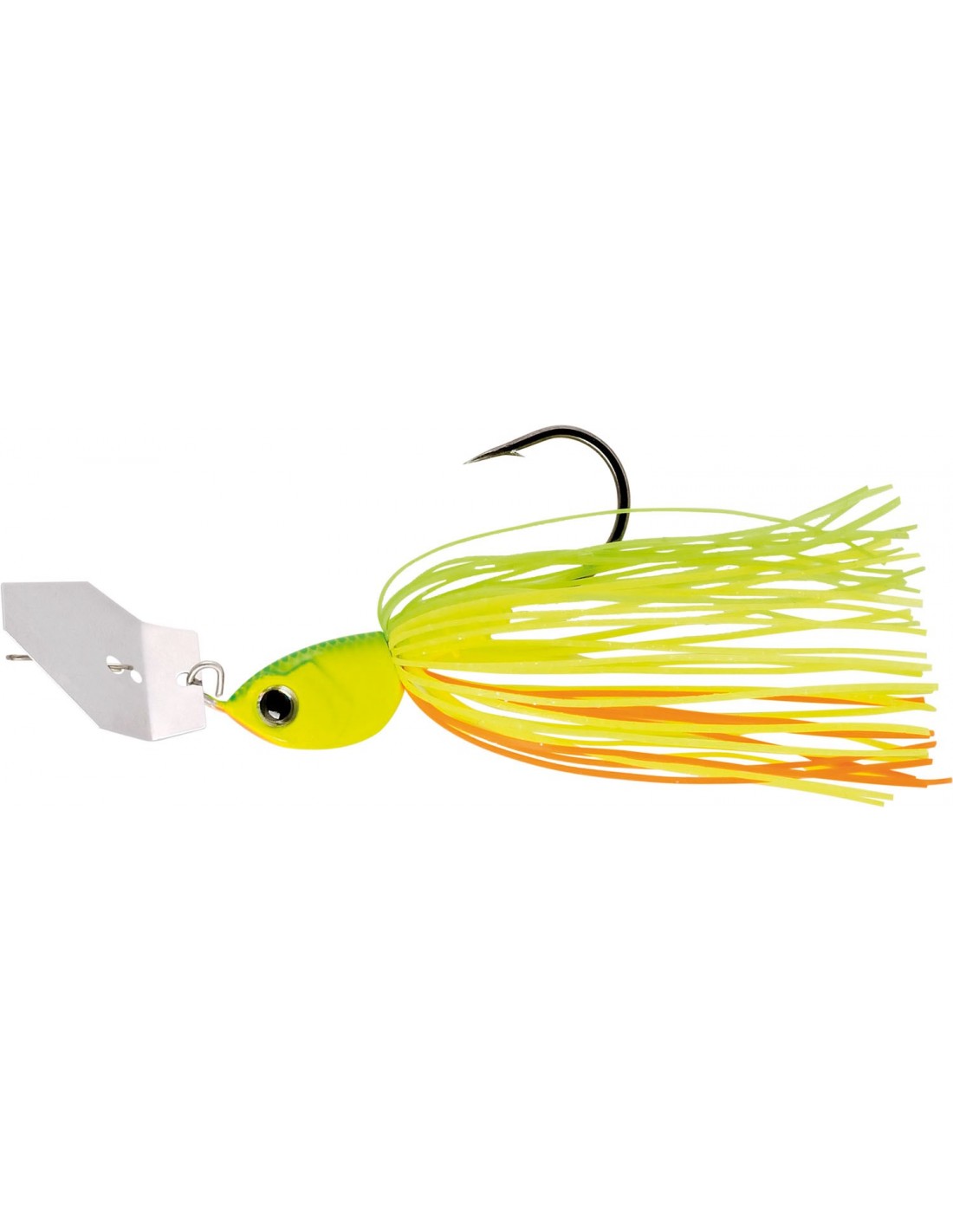 Die Konstruktionsmerkmale von Chatterbaits belaufen sich im Wesentlichen auf Jigkopf, Skirt, Blade und starr oder flexibel angebrachter Offset- oder Einzelhaken.